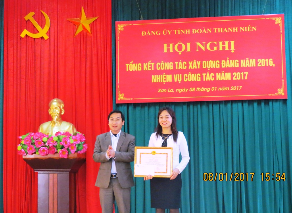 Tại Hội nghị, Ban Chấp hành Đảng bộ đã tặng giấy khen cho chi bộ “Cơ quan tỉnh đoàn Sơn La” đạt tiêu chuẩn “Trong sạch, vững mạnh” và 03 cá nhân đạt tiêu chuẩn“Đảng viên hoàn thành xuất sắc nhiệm vụ” năm 2016, biểu dương 4 Đảng viên tiêu biểu năm 2016./.