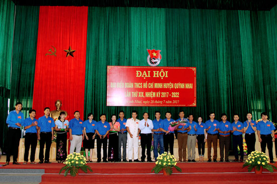 Lãnh đạo huyện Quỳnh Nhai tặng hoa chúc mừng Ban Chấp hành Huyện Đoàn Quỳnh